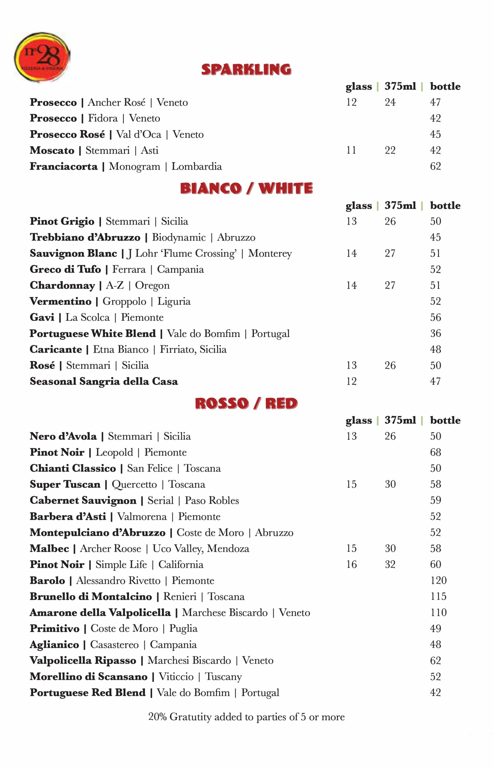 Corkage fee for wines $25 per bottle